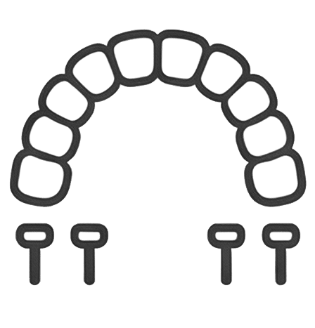 All-On-4 uses four dental implants in the upper or lower jaw to support a fixed full-arch bridge. This provides a secure set of replacement teeth that stay in place and are cleaned much like natural teeth.